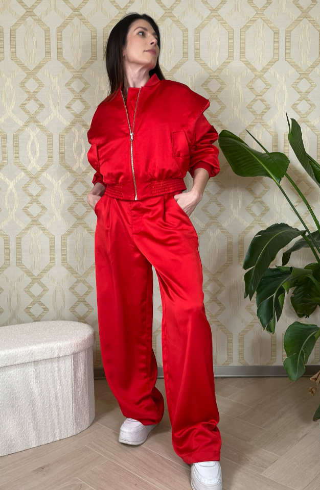 Pôsobia luxusne vďaka kvalitnému sateńovému looku. Sú rovného strihu, široké, s vyšším pásom. Opticky predĺžia nohy, čím sa zvýrazní krásna ženská postava. Funkčné vačky na bokoch nemôžu chýbať pre dosiahnutie street